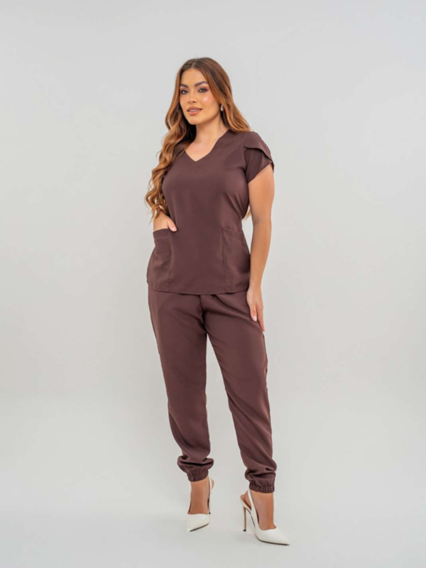 El Conjunto Luna está confeccionado en tejido Oxfordine, ofreciendo un toque de sofisticación y durabilidad. La blusa presenta cuello en V, mangas tipo tulipán, bolsillos frontales y un lazo en la parte trasera. El pantalón jogger cuenta con cintura elástica para mayor comodidad y practicidad, además de bolsillos delanteros tipo “faca”. Este conjunto es ideal para quienes buscan una combinación de estilo y funcionalidad en el día a día. La calidad del tejido Oxfordine garantiza resistencia y fácil mantenimiento, haciendo del Conjunto Luna una opción versátil para diversas ocasiones.